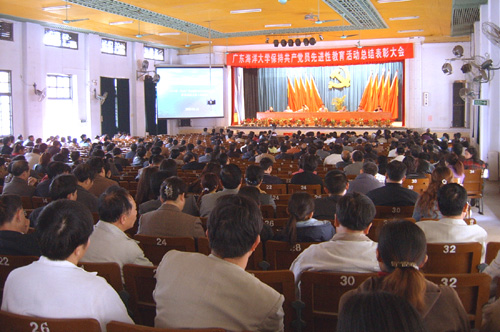 总结表彰大会在霞山校区礼堂召开,校党委副书记、校长胡日章出席大会并宣读了先进性教育活动表彰决定;校党委副书记、纪委书记容景春宣读了先进性教育活动整改方案;校党委副书记潘泰主持了大会。出席大会的校领导还有副校长何真、关志强、吴灶和等。