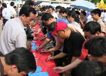 4月26日下午,我校万名师生在中心广场参加了“拒绝邪教进校园”动员大会暨 “拒绝邪教、热爱生命”万人签名活动。湛江市政法委副书记、市委防范与处理邪教问题办公室主任肖思辉、我校校长胡日章、党委副书记容景春、潘泰、副校长关志强以及各院系、部门相关领导参加了大会。大会由潘泰副书记主持。