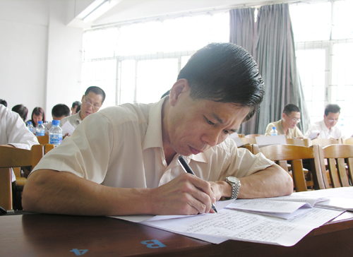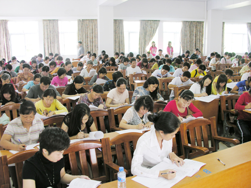 教工应考一丝不苟 10月17日下午,学校在教学主楼举行评建知识考试,包括所有学校领导在内的两千多名教职员工参加了考试。本次考试由宣传部和校评建办组织,各基层党委、机关部处积极配合,旨在进一步提高全校教职工对教育部本科教学工作水平评估重要性的认识,加深对评估指标体系内涵的理解,掌握评建基本知识,了解学校基本情况,增强使命感和责任感,做好各项迎评工作。