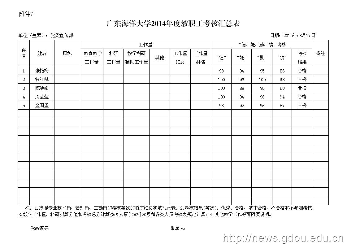 伟德bv1946官网2014年度教职工考核汇总