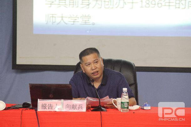 向献兵在会上作了题为《牢记大学使命与担当 做新时代“四有”好老师》的授课报告。在授课中,向献兵联系中外大学发展历史,结合当今高校发展实际,紧紧围绕习近平总书记提出的“一个根本任务”、“两个标准”和“三项基础性工作”,运用翔实的材料、生动的事例,从大学的使命与担当、大学如何担当好教育使命、牢记大学使命与担当做新时代“四有”好老师三个方面深入阐释了习近平总书记在北京大学师生座谈会和纪念马克思诞辰200周年大会上重要讲话精神的丰富内涵和精神实质,系统阐述了新时代高等教育的使命担当和责任要求。